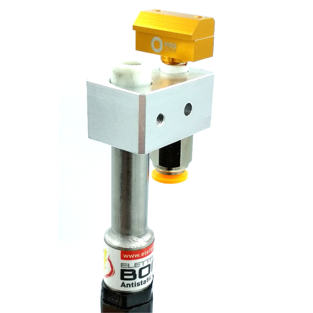 Come altre apparecchiature antistatiche attive, anche gli ugelli ionizzanti devono essere collegati ad un’alimentazione antistatica tramite un cavo ad alta tensione e all’aria compressa tramite filetto G1/8” e un tubo dell’aria. Si consiglia l’uso di un filtro dell’aria da 5 micron o inferiore in modo tale da evitare che l’ugello venga a contatto con impurità e umidità.